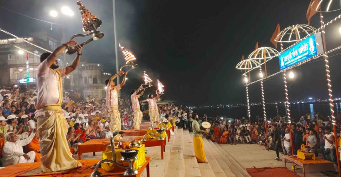 In Varanasi, you will attend Ganga Aarti at Dashashwamedh Ghat and visit Kashi Vishwanath Temple. You can also enjoy a boat ride on the Ganges.